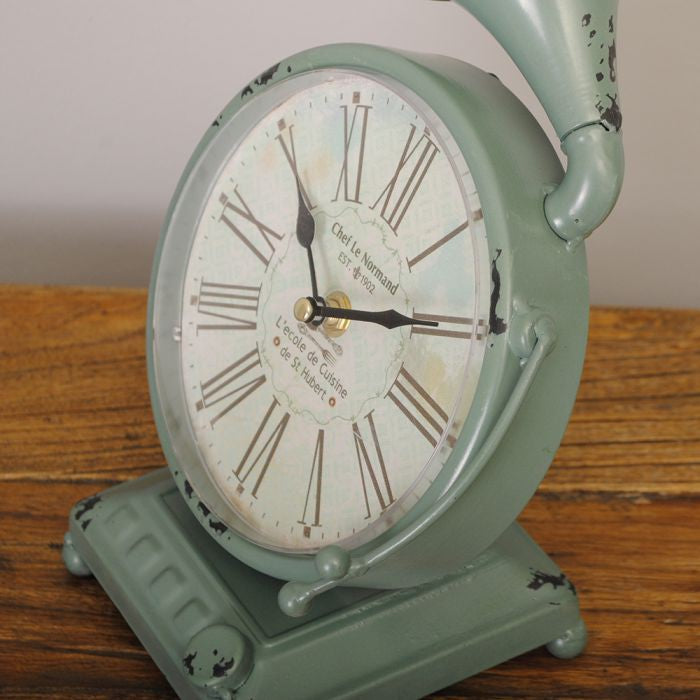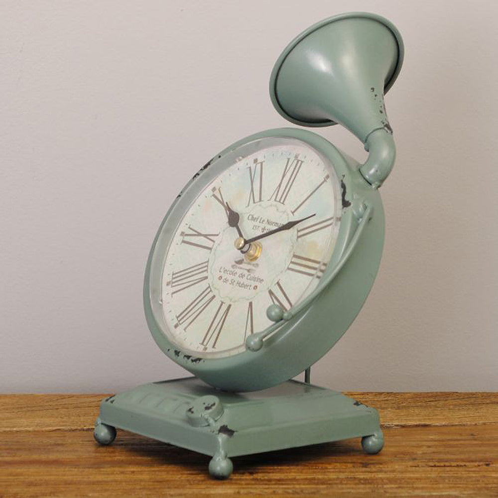 Vintage Tischuhr GRAMOPHONE aus Metall im Retro-Design