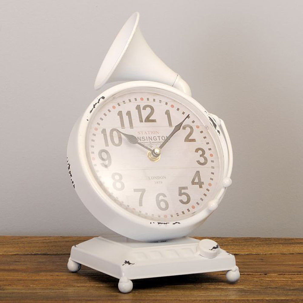 Vintage Tischuhr GRAMOPHONE aus Metall im Retro-Design