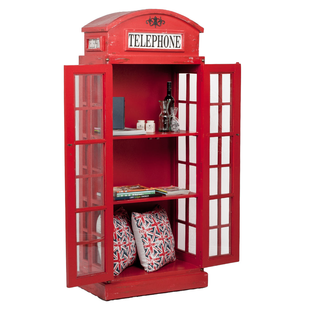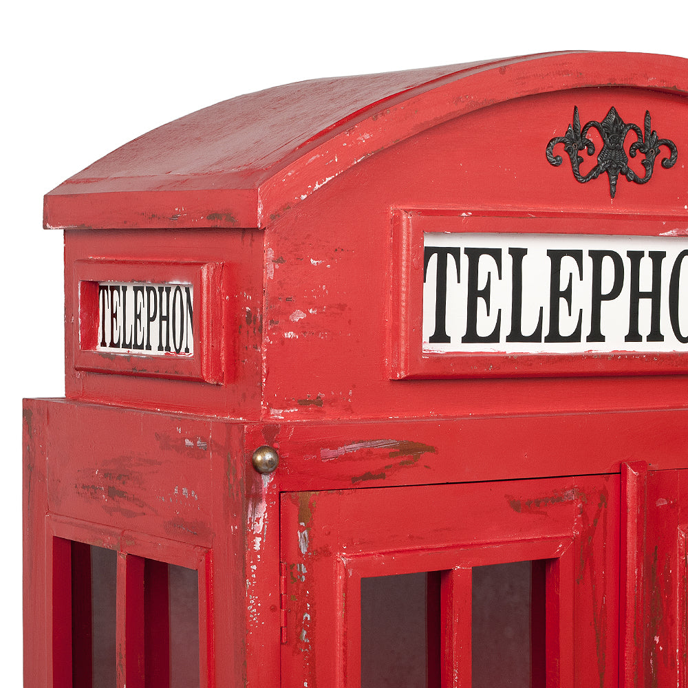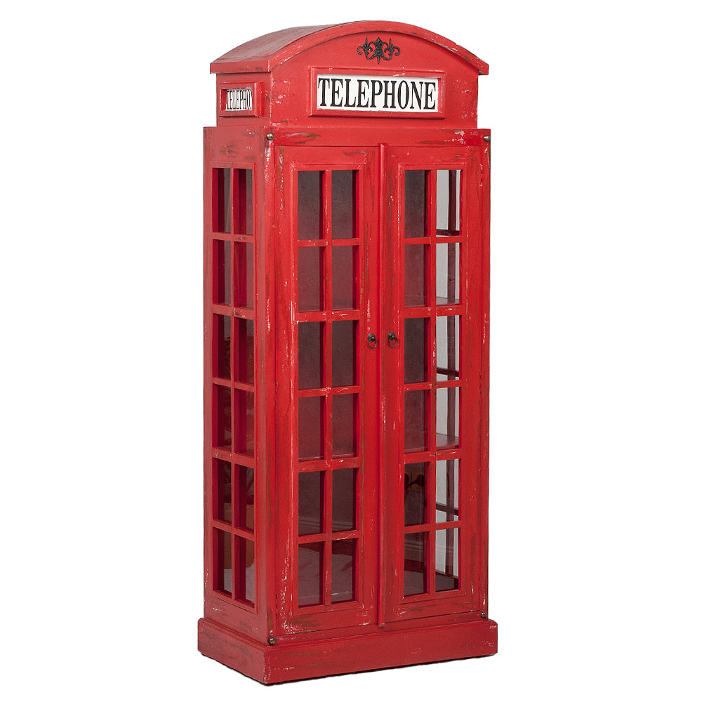 Vitrine Regal LONDON 2-türig Antik Rot Telefonzelle