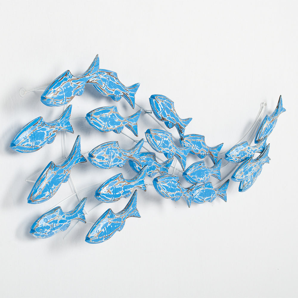 Wand-Deko IKAN Blue Wash ca. 110x45cm Albasia Holz Fische