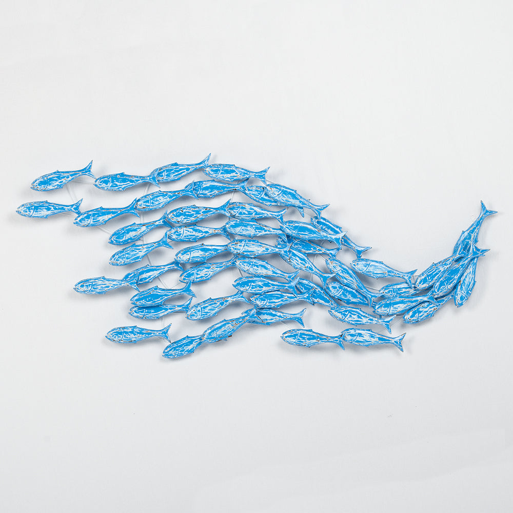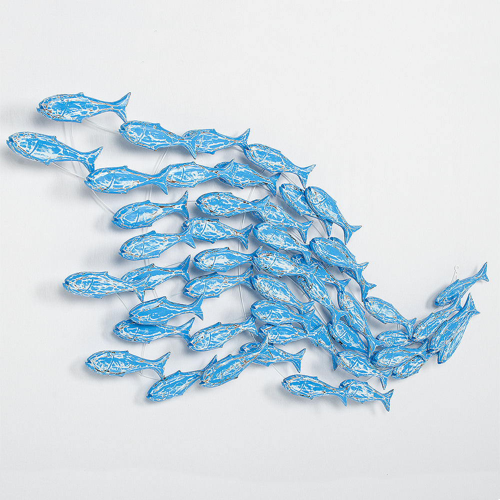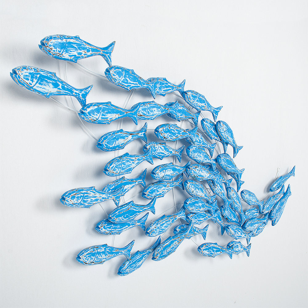 Außergewöhnliche Wanddekoration in Form eines Fischschwarmes.