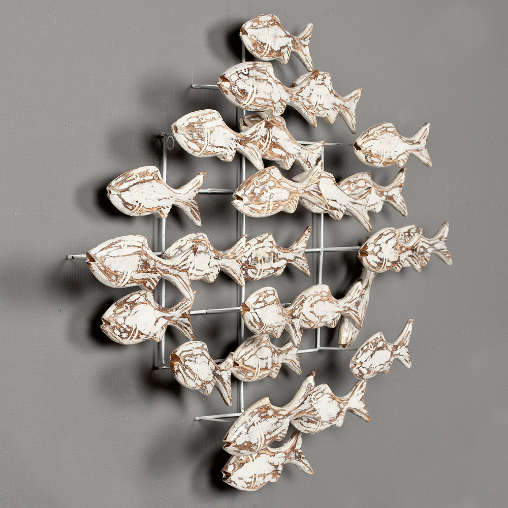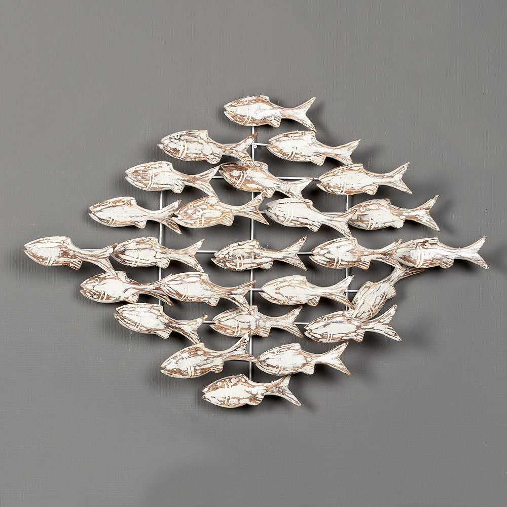 Wand-Deko IKAN White Wash ca. 80x80cm Holz Fischschwarm