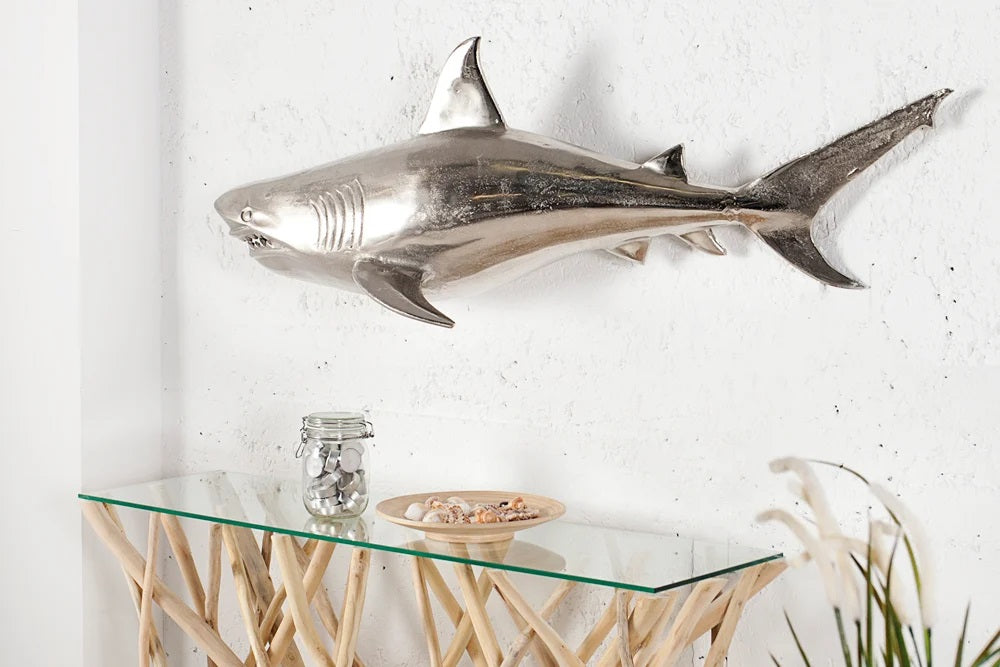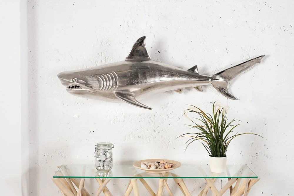 Vergeßt den weissen Hai ....... Jetzt kommt ein wahrer Eyecather mit unserem Modell SHARK nach Hause. Eine wirklich tolle Wanddekoration, um sich mit einem maritimen Flair zu umgeben.