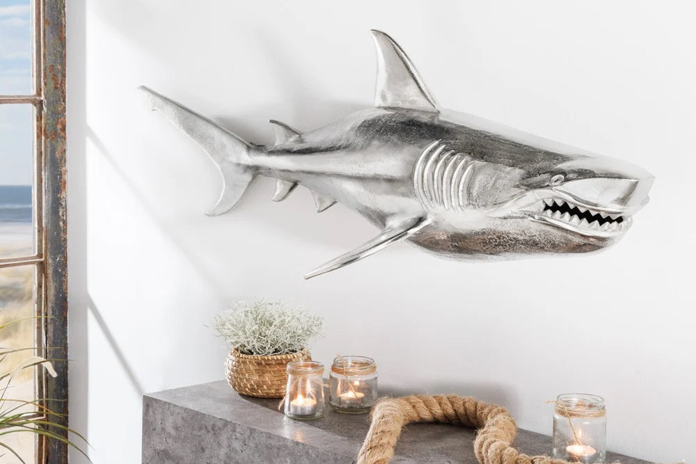 Vergeßt den weissen Hai ....... Jetzt kommt ein wahrer Eyecather mit unserem Modell SHARK nach Hause. Eine wirklich tolle Wanddekoration, um sich mit einem maritimen Flair zu umgeben.