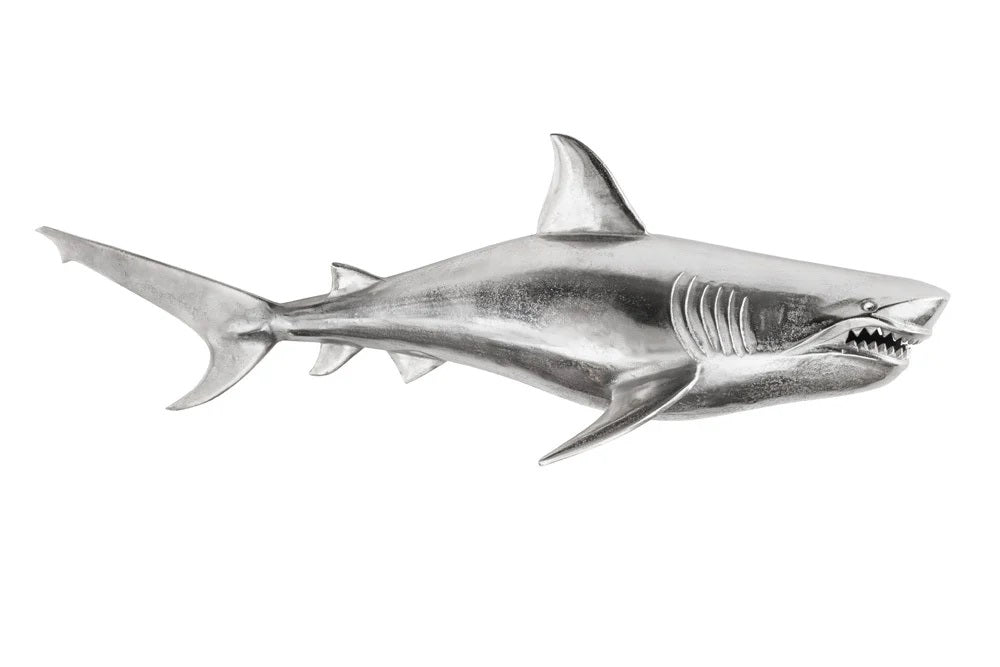 Wanddeko Haifisch 105cm SHARK silber Aluminium Maritim rechts