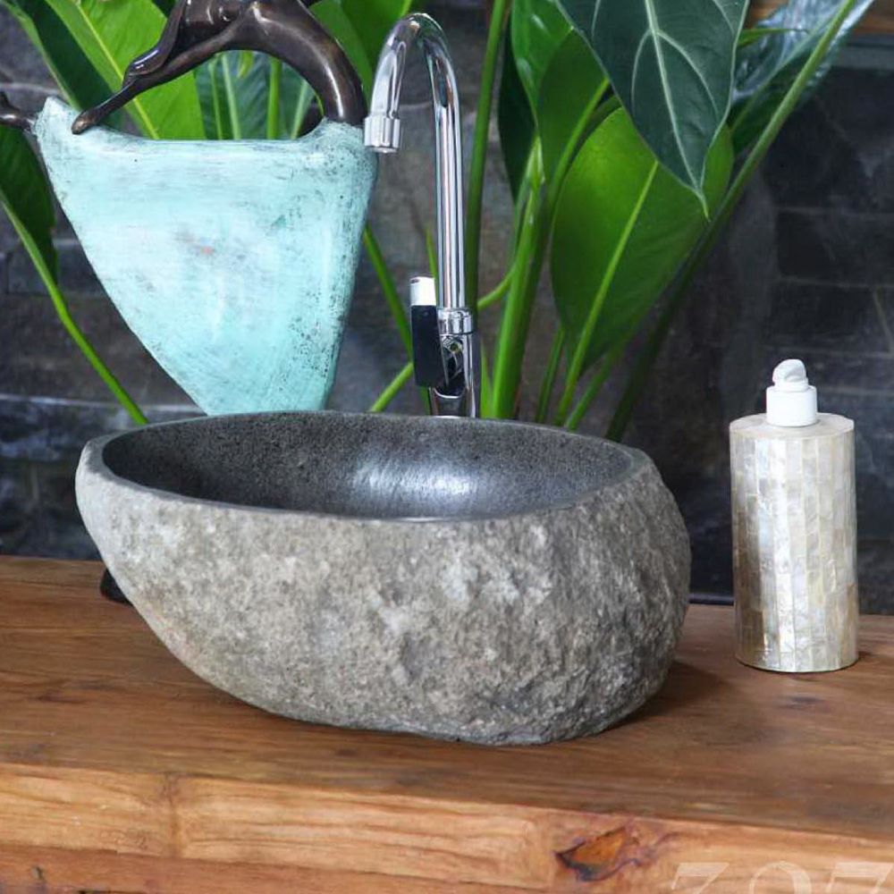 Waschbecken NATURSTEIN-L ca. 40cm Flußstein Findling