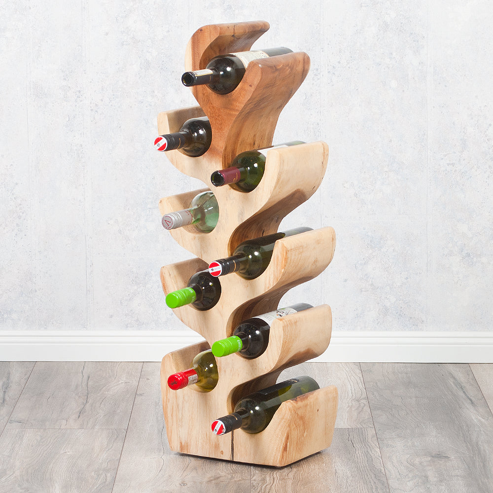 Das Weinregal BOTOL ist aus einem Stück hochwertigem Massivholz gefertigt und wird bereits fertig montiert geliefert. Extravagante Weinregale aus Massivholz sind derzeit sehr gefragt und das Weinregal BOTOL ist ein wahrer Hingucker. Die Natürlichkeit und Robustheit des Flaschenhalters verschmelzen mit dem geschwungenen Design. Ob weitere Holzmöbel, Accessoires aus Metall, eine Lampe aus Leinen oder ein Sideboard mit Glaselementen: Das Möbelstück ergänzt jede Wohnzimmereinrichtung perfekt.