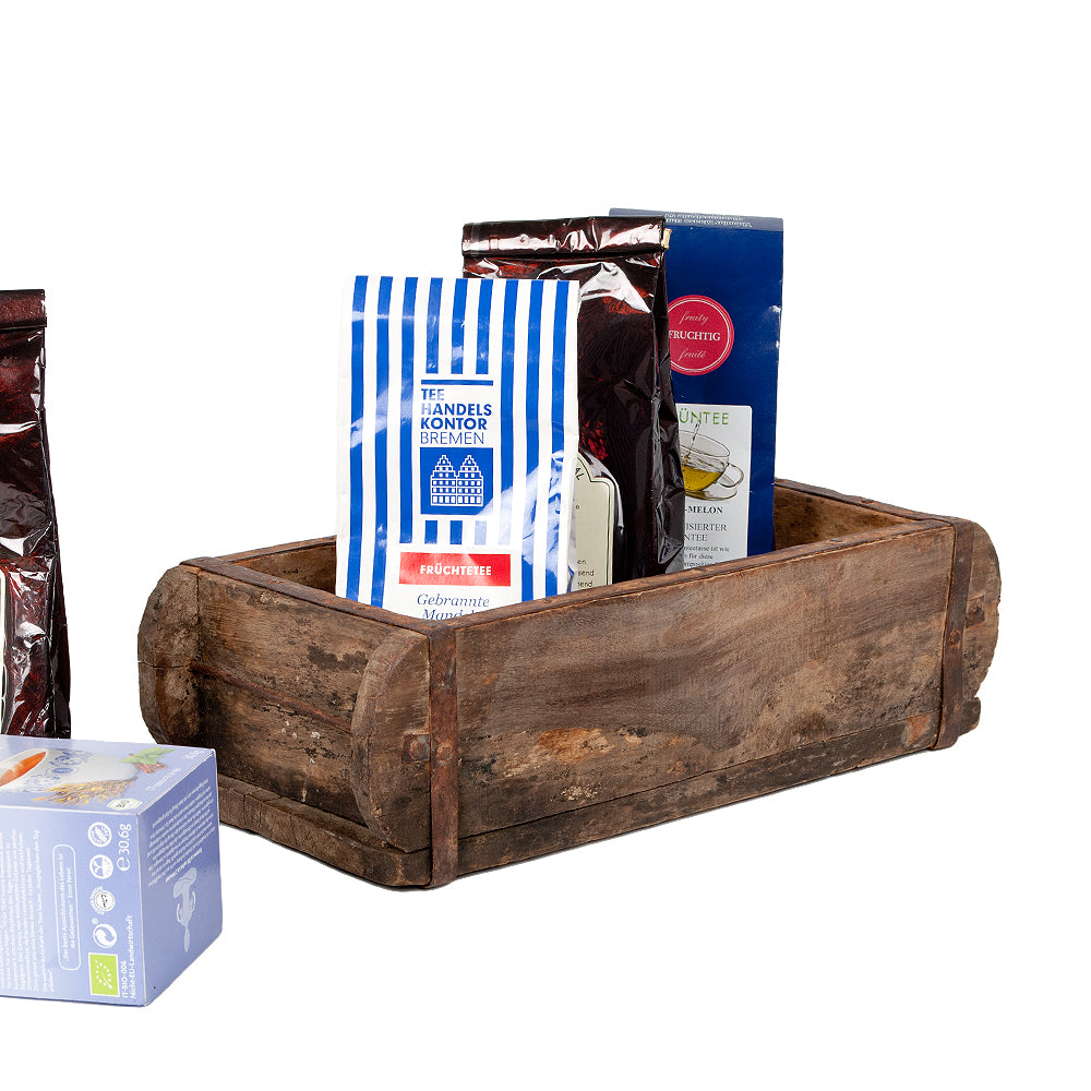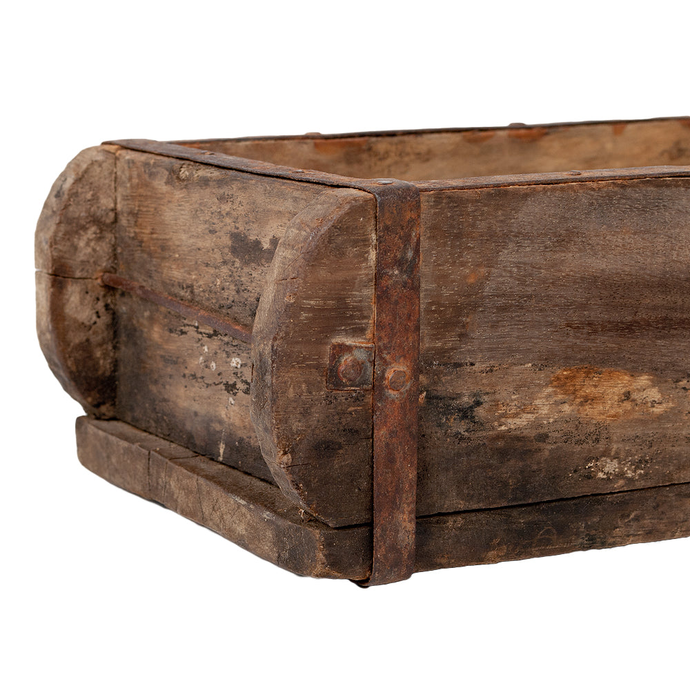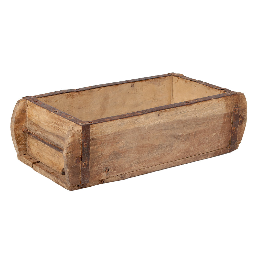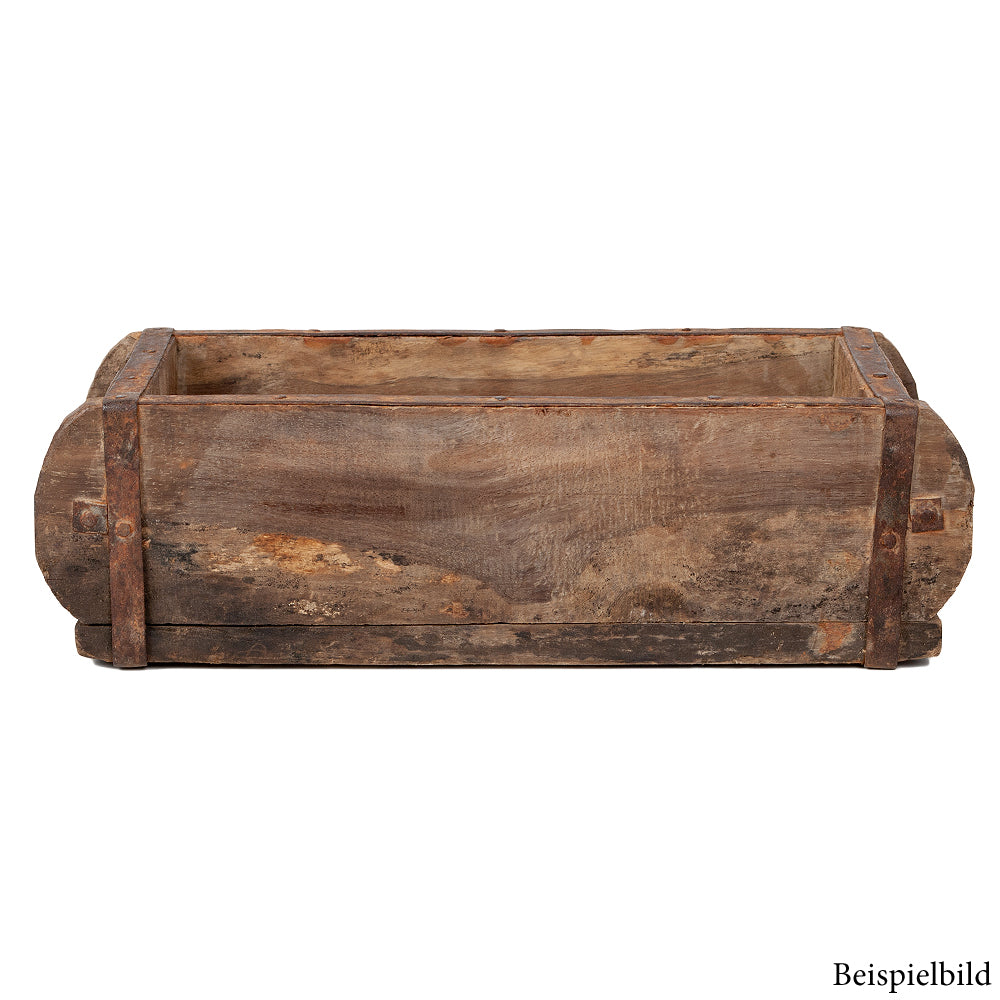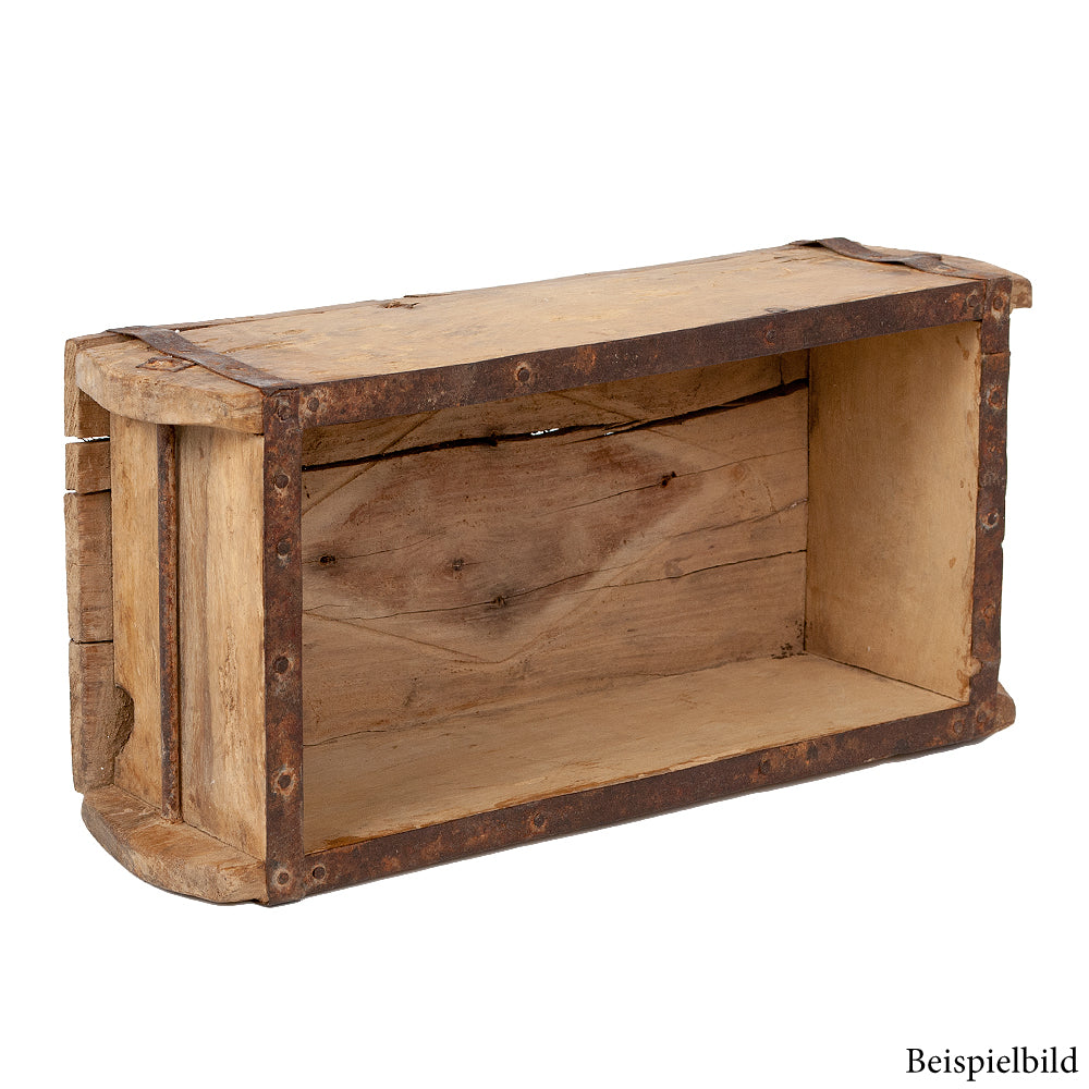 Früher in Benutzung als Form um Ziegelsteine herzustellen, aber noch lange nicht ausrangiert. Die dekorative, kleine Aufbewahrungskiste BATA-1 mit Metallbeschlägen sorgt für rustikalen Charme. Ein uriger, pfiffiger Hingucker, auch sehr gut als kleines Wandregal (Wandhalterungen nicht enthalten), als Dekoobjekt für Pflanztöpfe oder in der Küche für Tee, Kräuter oder Gewürze geeignet. Lassen sie ihrer Kreativität freien Lauf.
