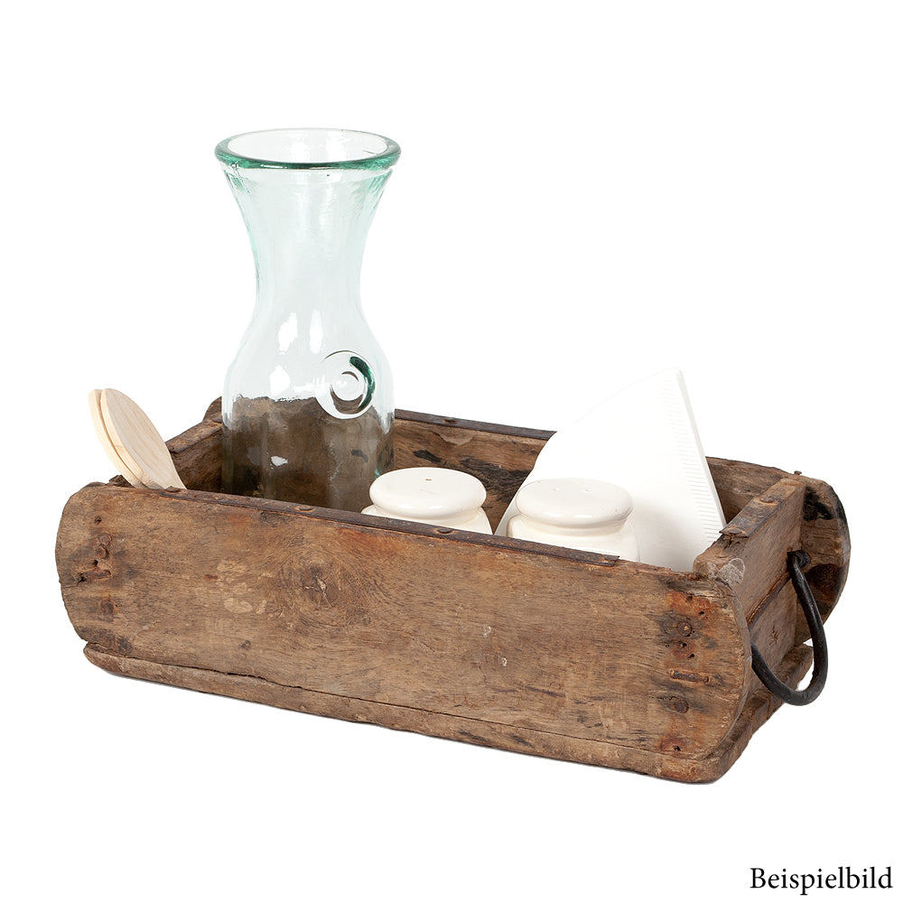Früher in Benutzung als Form um Ziegelsteine herzustellen, aber noch lange nicht ausrangiert. Die dekorative, kleine Aufbewahrungskiste BATA-2 Henkeln und Metallbeschlägen sorgt für rustikalen Charme. Ein uriger, pfiffiger Hingucker, auch sehr gut als kleines Wandregal (Wandhalterungen nicht enthalten), als Dekoobjekt für Pflanztöpfe oder in der Küche für Tee, Kräuter oder Gewürze geeignet. Lassen sie ihrer Kreativität freien Lauf.